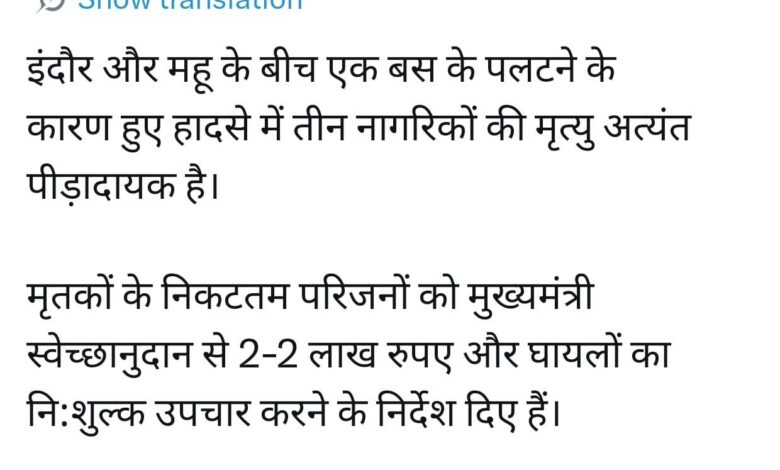 मृतको को प्रदेश के मुख्यमंत्री डॉ मोहन यादव ने दी स्वेच्छानुदन से 2– 2 लाख रुपए देने की घोषणा