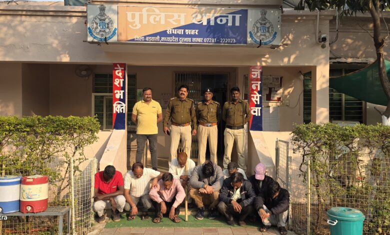 सेंधवा शहर थाना पुलिस ने सट्टा संचालित करने वाले 9 आरोपियों को पकड़ा ,हजारों रुपए जप्त