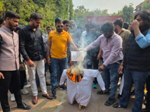 करणी सेना ने यूजीसी का पुतला फूंका